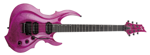 アグレッシブなフォルムと豊かな木の鳴りを融合させたESP木工加工の極み。CTMのトップ材には美麗な杢が出た希少な木材が使用されています。Floyd Roseトレモロ搭載タイプ。