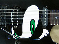 2005年に発売された、SHADOW THE HEDGEHOGに合わせて製作されたVPを元にしたギター。メイン曲「I Am...All Of Me」はチューニングが低く、今までのギターでは不都合があるので、このギターが誕生します。スーパーロングスケールを採用することで、チューニングを下げてもテンションが稼げる利点があります。 |