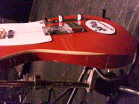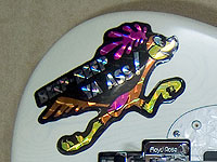 ボディに貼られたステッカーが愛称の由来になっています。元々は1997年頃に手に入れたVintage Plusで、当初のカラーはブルー。コアメイプルのサブとして使用していたので、同じようなスタイルに改造されています。 |