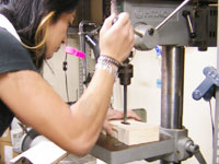 | ボ〜ル盤で穴を大きく広げている。 |