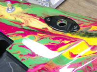| ボディ裏側も見事なマ〜ブル模様!この模様は特殊な塗装方法で仕上げられており、全く同じ模様はこの世に二つとないのだ! |