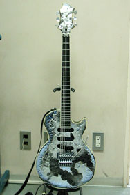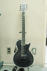 今回は2音下げチューニングにセッティングされている。 弦は1弦から011 , 014 , 018 , 038 , O48 , 065。このギターを2音下げで使用したのは今回が始めてである。ちなみに6弦の065はS-7の7弦同様、ベース弦を使用している。普通のギターだと、弦のゲージを極端に太くしたりするには、ナットの弦溝を広げなくてはならないが、その点、FloydRoseシステムは弦のゲージを自由に変えることができるので便利である。