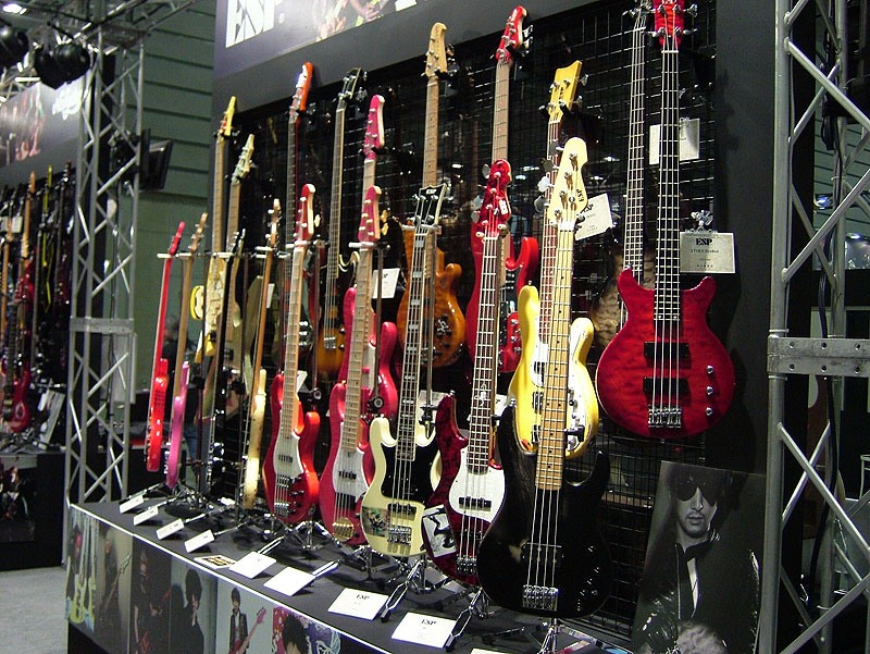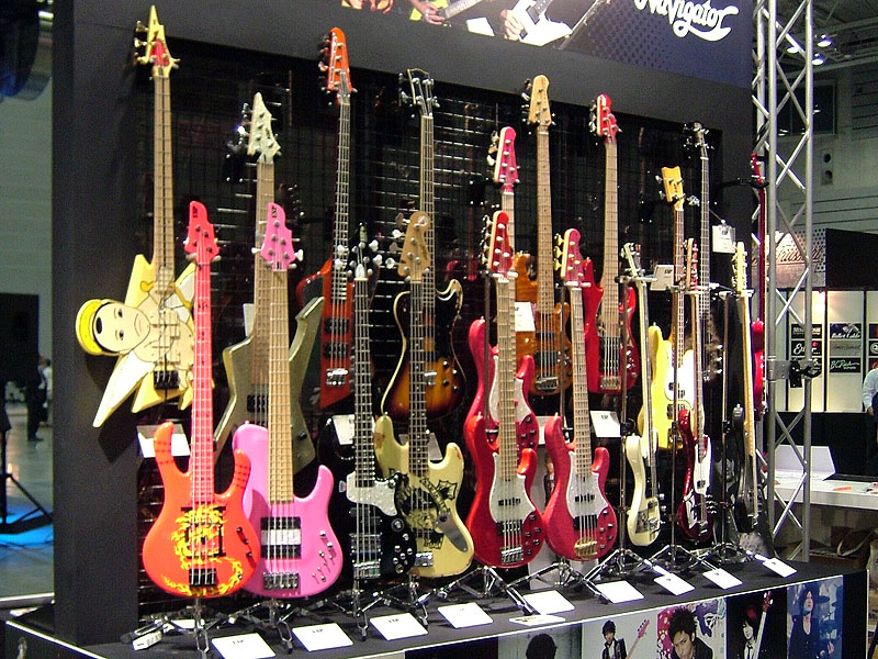 こちらのコーナーにはベースを集めてみました。憧れのベースが間近で見れるとあって、みなさん写真に撮っていました。 |