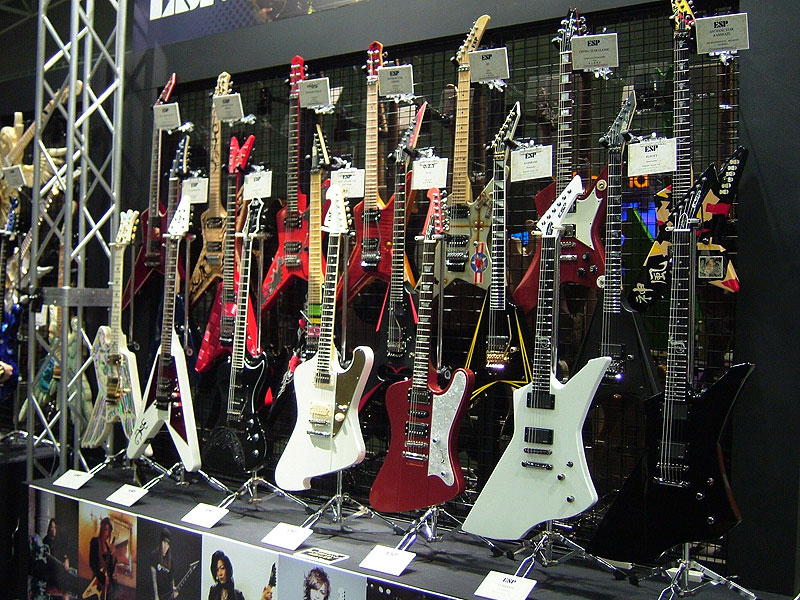 いわゆる変形ギターのコーナー。なんだかRSシェイプのギターが多いですね。もはやESPの変形と言えばRSシェイプ? |