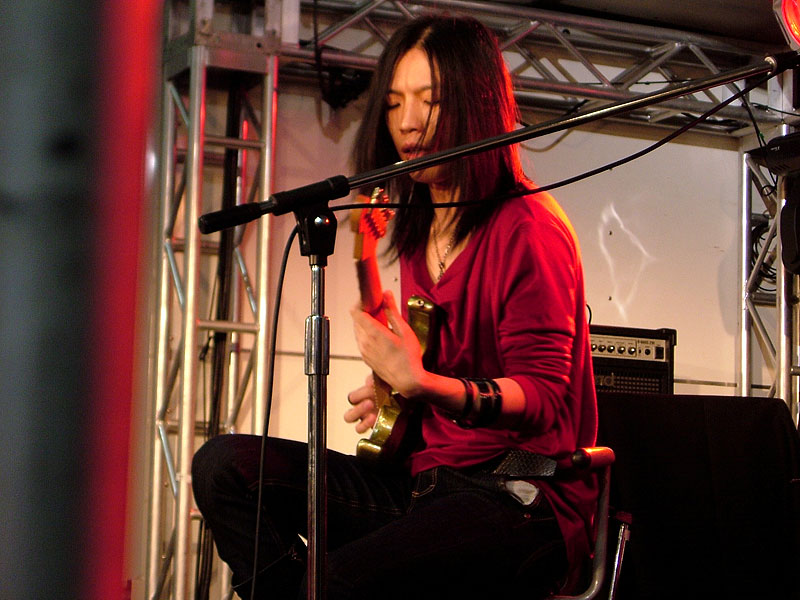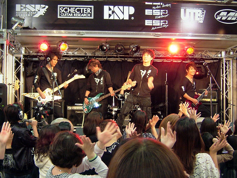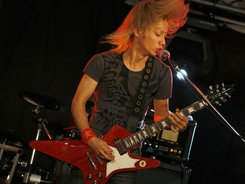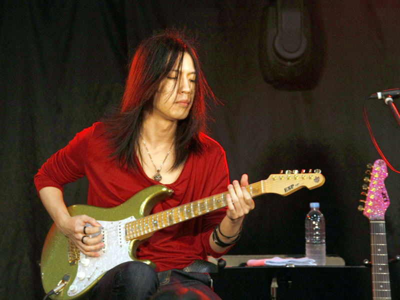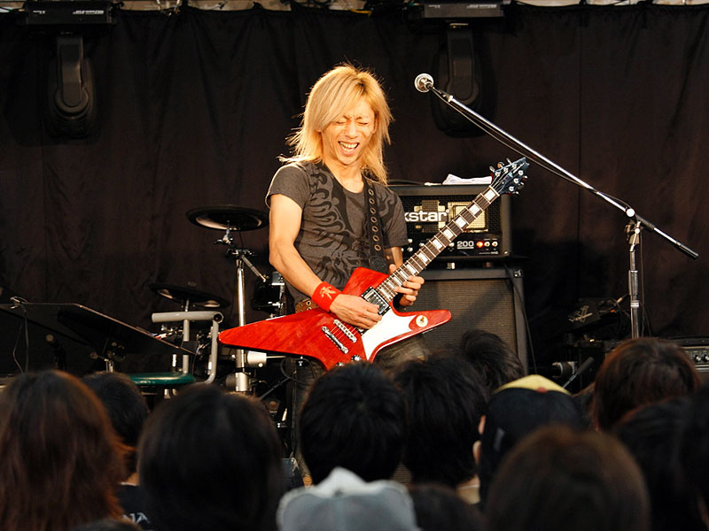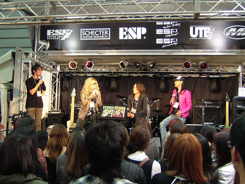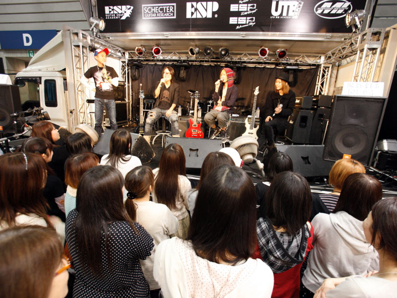 ESPカスタムメイドギターを操り、自身のバンドALHAMBRAの楽曲をプレイ。そのテクニックに皆釘付け。 |