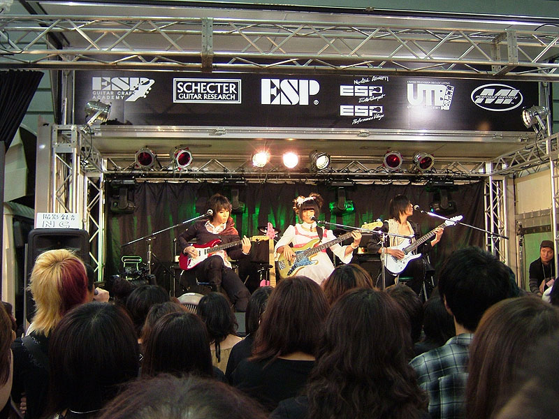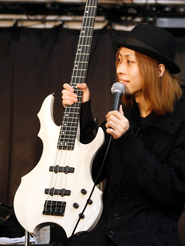 人気急上昇中のガールズバンド"Gacharic Spin"によるライブパフォーマンス。FチョッパーKOGAはオリジナルVシェイプとBOTTOM BUMPを、TOMO-ZOはE-SNのプロトタイプをそれぞれ使用。パワフルなステージングと、確かなテクニックでファンならずとも、初見の人も虜にしていました。 |