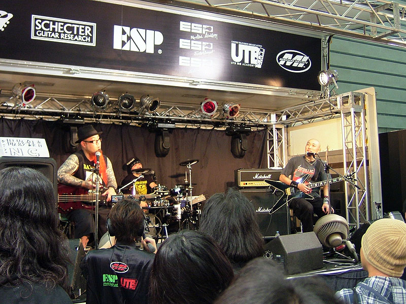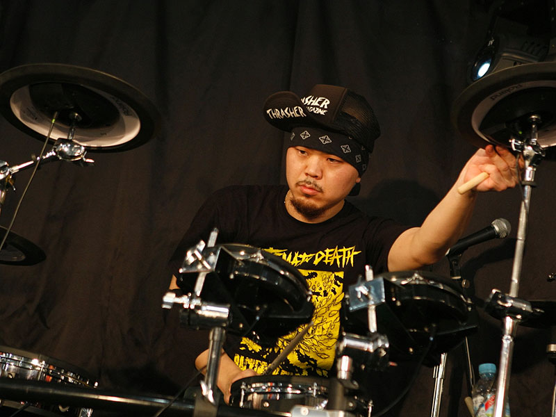 BPM13GROOVE、BATCAVE、DETROX supportなどで活躍するWU-CHY&YOUTH-K!!!と、THE冠のサポートギタリストを務めるBETCHが組んだスペシャルユニットによるデモンストレーション。メタリカのカバーなど、熱いステージングでした。 |
