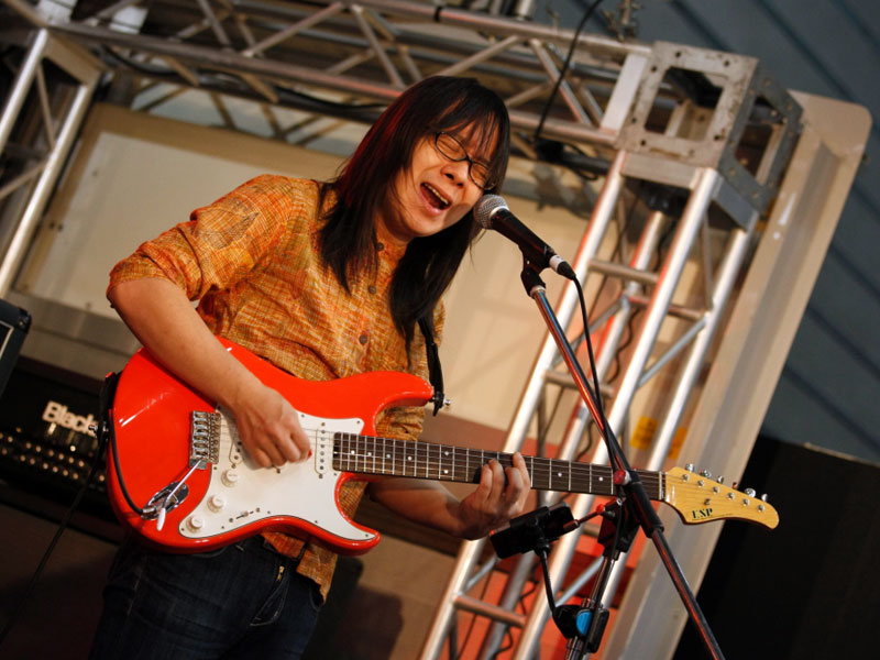 自らのバンドTRICK BOXを率いてのライブ。いい意味での変態的なプレイに、見ている人も釘付け状態! |