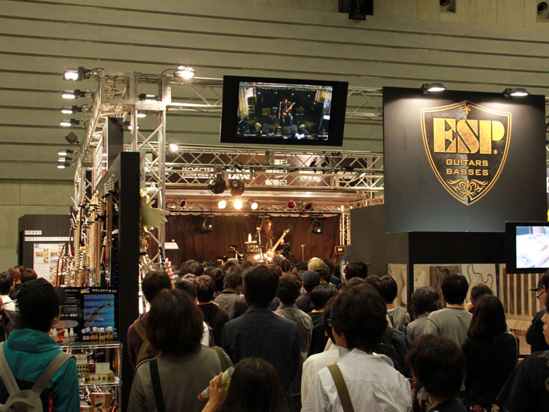 GALNERYUS/SyuによるデモンストレーションもESPブースの定番となりました。国内最高峰のギタープレイが炸裂!極上のトーンでクライングしてました! |