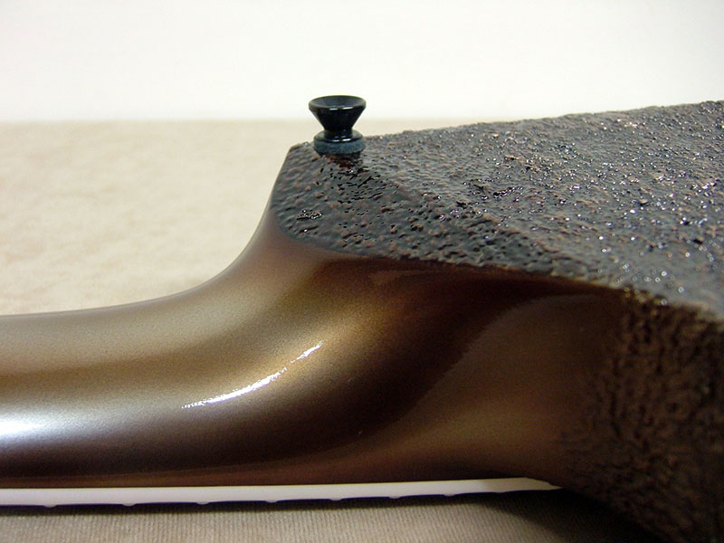 トレモロレスのNTでは、ブリッジにTonePros®を採用しています。固定することで弦高のずれや弦交換時におけるブリッジ本体の落下などを防ぎます。また、弦をボディバックから張りますので、よりタイトでソリッドなサウンドへシフトします。