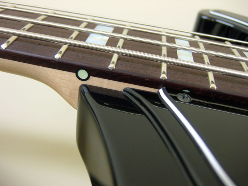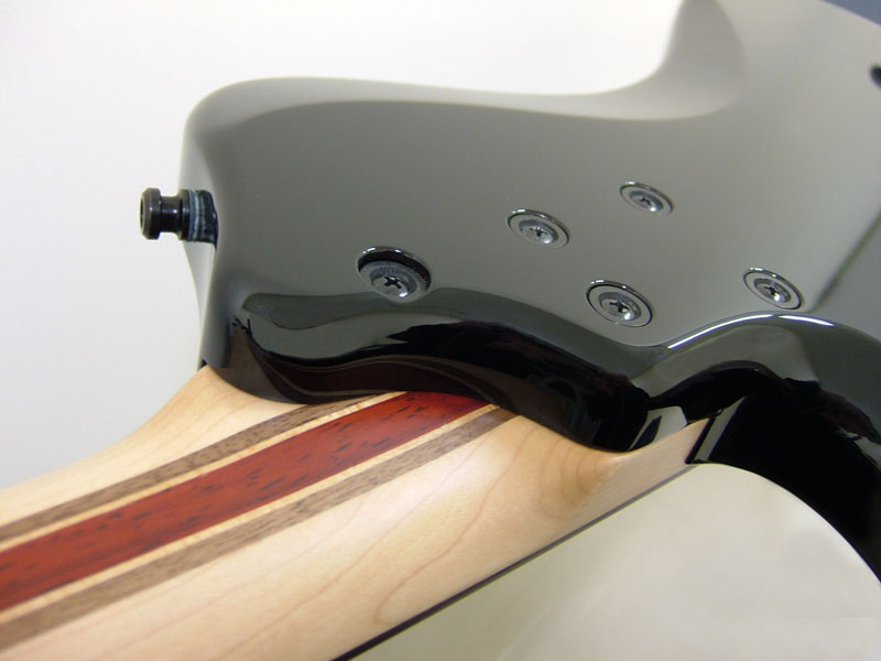 ハイフレットでもストレスなく、スムーズなフィンガリングを可能にした、ヒールカット。ネック材には7ピース材を使用して、剛性を強めています。