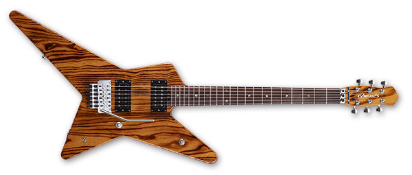 ボディは木目の美しいアッシュで、木目(導管部分)がバーナーで焦がされシースルーブラウンフィニシュで仕上げられています。ネックはハードメイプルでデタッチャブル方式でボディにジョイントされています。指板はロースウッドでポジションマークにはアバロンが使用されています。ヘッドトップにもアッシュがラミネートされ、ボディと同様のフィニシュで仕上げられています。ピックアップにはESP LH-200を搭載。ブリッジはチューニングの安定性で定評のフロイドローズ1000シリーズをリセスなしのフローティングで搭載しています。コントロールはマスターボリューム、ピックアップセレクター、ON/OFFスイッチの構成です。