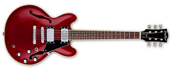 セミホロウ構造のボディはバックにマホガニー、トップにメイプルを使用しています。ネックはマホガニー、指板はローズウッドで、ボディへはセットネック方式でジョイントされています。スケールは512mmです。ネックピックアップの代わりに、ピックアップ型のスピーカー"スピークアップ"を搭載していますので、アンプに繋がなくてもその場でエレキギターサウンドを楽しむことが出来ます。