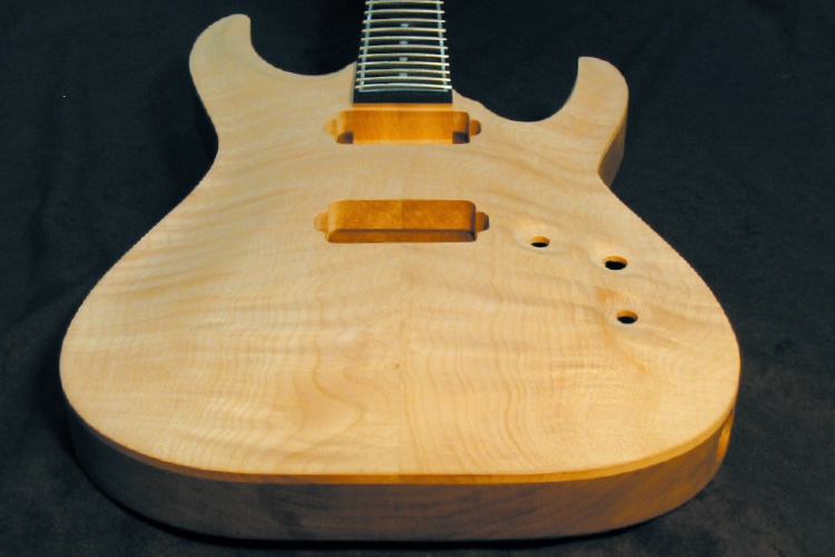 単一材を使用することにより、木の個性をそのまま出します。豪華でサスティーンの良い1ピース材、接ぎ合わせることで音の暴れを抑える2ピース材、ヴィンテージを模して合わせ目をオフセットすることもできます。