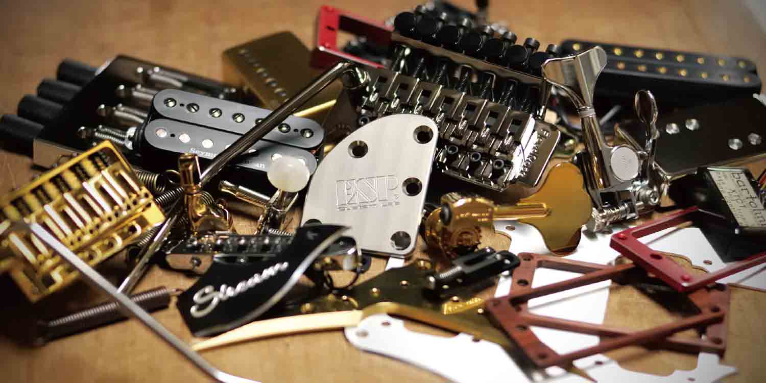 コントロールパネルなど、オリジナルプレートの製作も承ります。木製のコントロールノブ、ピックアップカバーなども対応可能です。