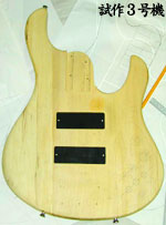 ![]() まず、おおまかなオーダーシートを元に、試作機を作っていくことになります。試作機はP.U.位置、ペグ位置、コントロールなど、あらゆるパターンを試すことが出来るように様々な工夫がなされました。P.U.は「おいしいポイント」を探すため、任意の位置に移動ができるようになっています。 |