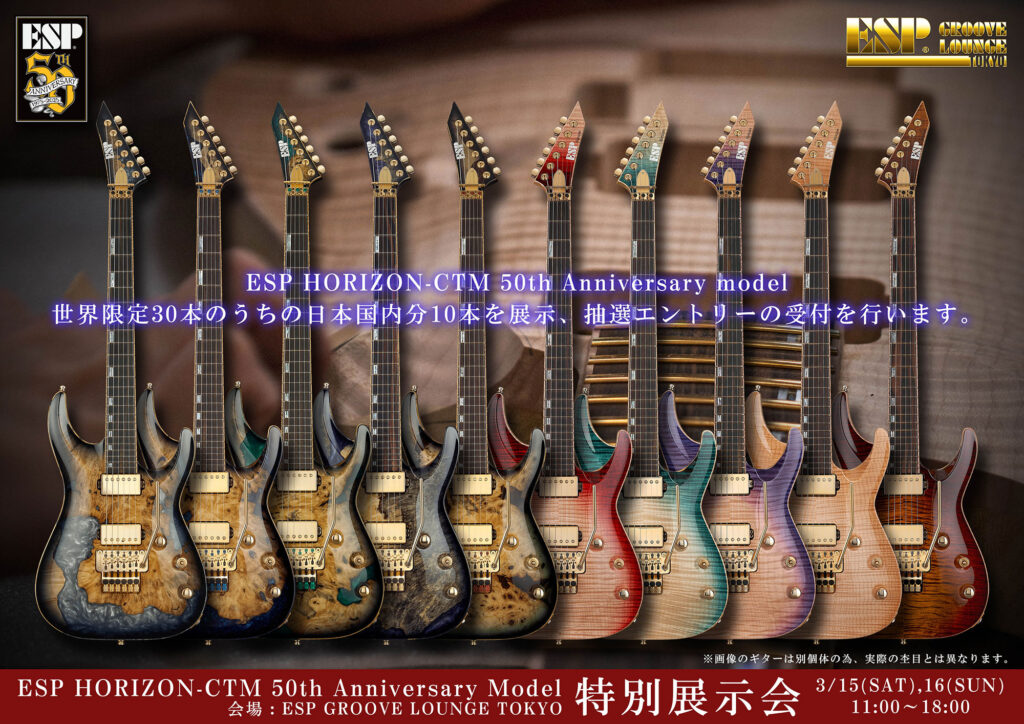 ESPは、2025 NAMMショーで発表され、現地でも展示された「ESP HORIZON-CTM 50th Anniversaryモデル」の日本国内展示会を、ESP GROOVE LOUNGE TOKYOにて開催することをお知らせいたします。この限定モデルは、ESPのフラッグシップ・モデルであるHORIZONシリーズの最高峰モデル、CTMをベースにカスタマイズされた全世界30本限定の特別なギターです。