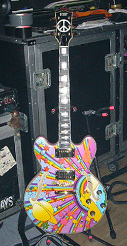 8月25日から始めたオリジナルギターのペイント作業が難航し、コンサート初日に会館へ持ち込みという久々にギリギリの完成となりましたが、流石はワールドツアーをこなした百戦錬磨のジョン&ポールKazukoh。 何の問題もなく弾きこなし、唯一無二のKazukohギターサウンドを奏でてくれました。 曲中のMCでもお話されてましたが、サイケなデザインの色使いは全10色で更にグラデーションが加わった塗装工程としてはかなり難しい作業が強いられました。 しかもデザインの違うものを2本同時進行は過去にも経験のない、まさに限られた時間の中での激務でした。 日本公演は3公演しか行われませんでしたが、その全てが素晴らしいものでした。 |