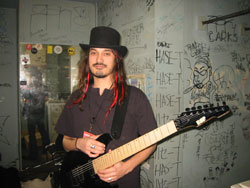 | これは11/3〜4の新宿リキッドルームのときにギターを弾いていたチャーリーさん。リキッドルームの楽屋でのスナップ。FINALのときも応援に駆けつけててくれました。手にしているのはLIVEで使用していたESP SEC-7FR。 |