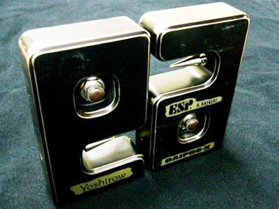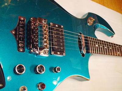 ![]() ESP SLAVE-I BLACK VERSION。 ![]() PUのマウントリングはブラス製で、古びた風合いに加工されている。 ![]() 秋葉チックなコントロールノブは、もう売ってません! ![]() ボディのフィニッシュはシルバーの上に黒を塗り、あえてその黒をはがしたもの。 イメージは武器、古びた宇宙船。プラモ界で言えばハゲチョロ塗装。 元々はYOSHIROW氏の「ボディのエッジを目立たせたい」との要望から生まれた。 このフィニッシュはのちにESP ORIGINAL SERIESのAXにも採用された。 d ![]() ヘッドももちろんオリジナルデザイン。これものちにリデザインされ、 ESP HALIBUTやESP BOTTOM LINEのヘッドの元になった。 ペグノブは見栄えの良さ、軽量化のため、パールタイプのプラスチック製。 ![]() 劇団☆新感線での公演中のショット |