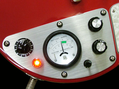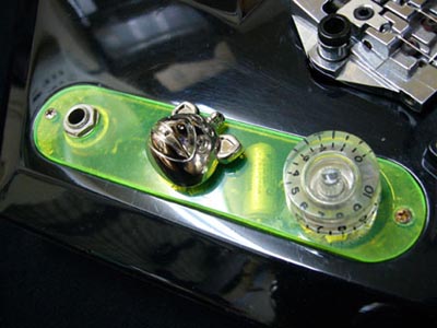 ![]() メーター取り付け&ボディに穴を開ける前。 ![]() ![]() ピックガード、ロッドカバー交換、軽量化のためにボディに穴あけ。 (写真提供:ダイプロ・エックス) ![]() ステッカーの形にわざわざあわせてあるところもポイント。 ![]() コントロールパネルを追加し、真ん中には秋葉のジャンクショップで見つけたヴィンテージメーターが。。。 メーターはバッテリー残量計として機能している。もちろんお気に入りのEZQ内蔵。 メーター横のスイッチでON-OFF、あやしいコントロールノブでワウがかかる。 |