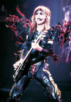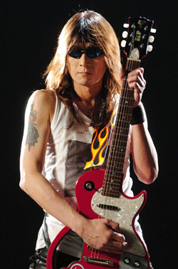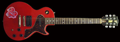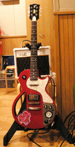 ![]() LPSタイプ。フィニッシュはチェリーサンバースト。 ![]() こちらが大改造したという赤いLPSPタイプ。(写真提供:円谷プロダクション) なお、このギターはYOSHIROW氏とともに、なんと「ウルトラマンマックス」にも出演している!