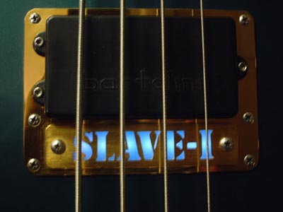 ![]() ESP SLAVE-I BLUE VERSION。YOSHIROW氏がつけた呼び名は「SUPER SLAVE-I」! ![]() 「SLAVE-I」の文字がLEDによって点灯!電池喰います・・・(笑) ![]() バルトリーニEZQ回路(パライコ的なサーキット)内蔵。ワウのような効果が出せる。 |
