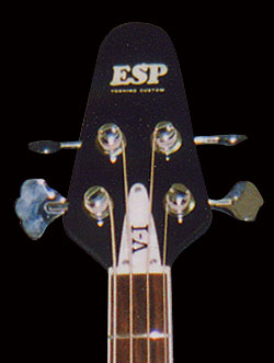 ![]() ESP V-I。スルーネック構造のESP V-I青ラメの塗装で、 ボディの段差と相まってステージ映えバツグン! ![]() ロッドカバーには「V-I」と刻印されている。 |