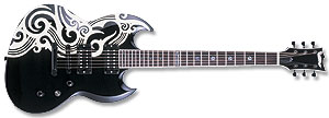 ストリートスタイルで圧倒的な人気を誇るブランドであるPEACE MAKER。そのPEACE MAKERとESPとのコラボレーションによって誕生したギターがこのPM-98VPです。VPを基本として、ボディには大胆にアレンジされたトライバルがペイントされています。ヘッドにはPEACE MAKERのロゴが入れられ、指板にも三つ巴のインレイと、12フレットにもPEACE MAKERのロゴが入ります。リアピックアップにはSeymour Duncan SH-4が搭載されていますので、見た目に負けないサウンドを約束します。付属する専用ギグバックにも、もちろんトライバルがペイントされています。 2004年10月発売予定、定価は102,900円(税込)となっています。