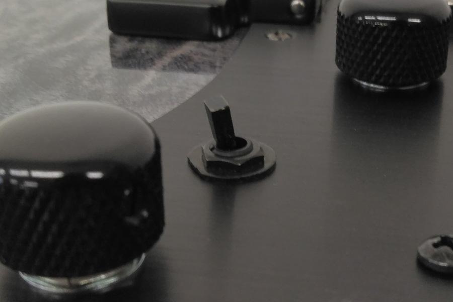 マスタートーンにはスイッチ付ポットを採用し、0.047μFと0.0068μFの異なる値のキャパシターが実装されています。ノブをプッシュすることでワンタッチで切り替えることが可能で、プッシュアップ時には、0.0068μFが選択されマイルドトーンとして機能します