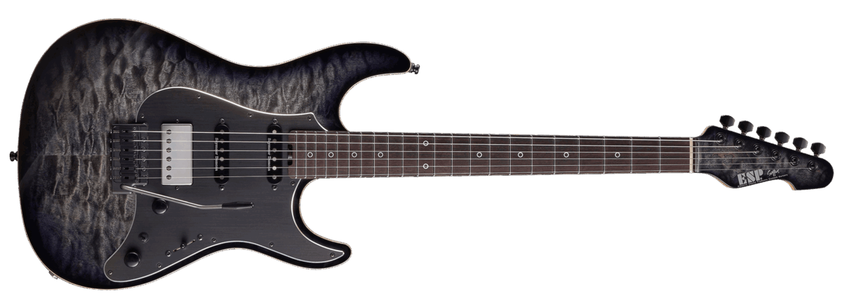 そして精悍なルックスとノイズ軽減を両立するアノダイズド・ピックガードを採用しています。