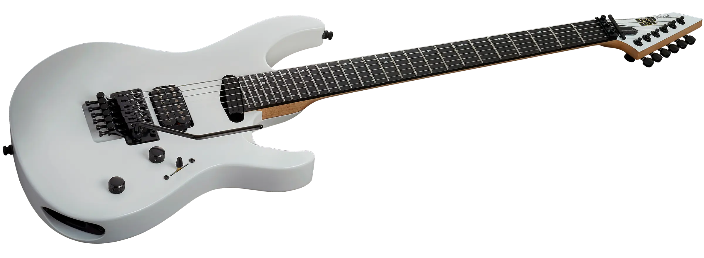 小振りなボディシェイプのMAVERICKは、27フレット仕様で深く入ったカッタウエイ、ジョイント部のOVALカット、バックハンドカットなど、ハイフレットでのプレイヤビリティを抜群に向上させます。また、フロイドローズトレモロを搭載していますので、テクニカルなプレイスタイルにも完全に対応することが可能です。