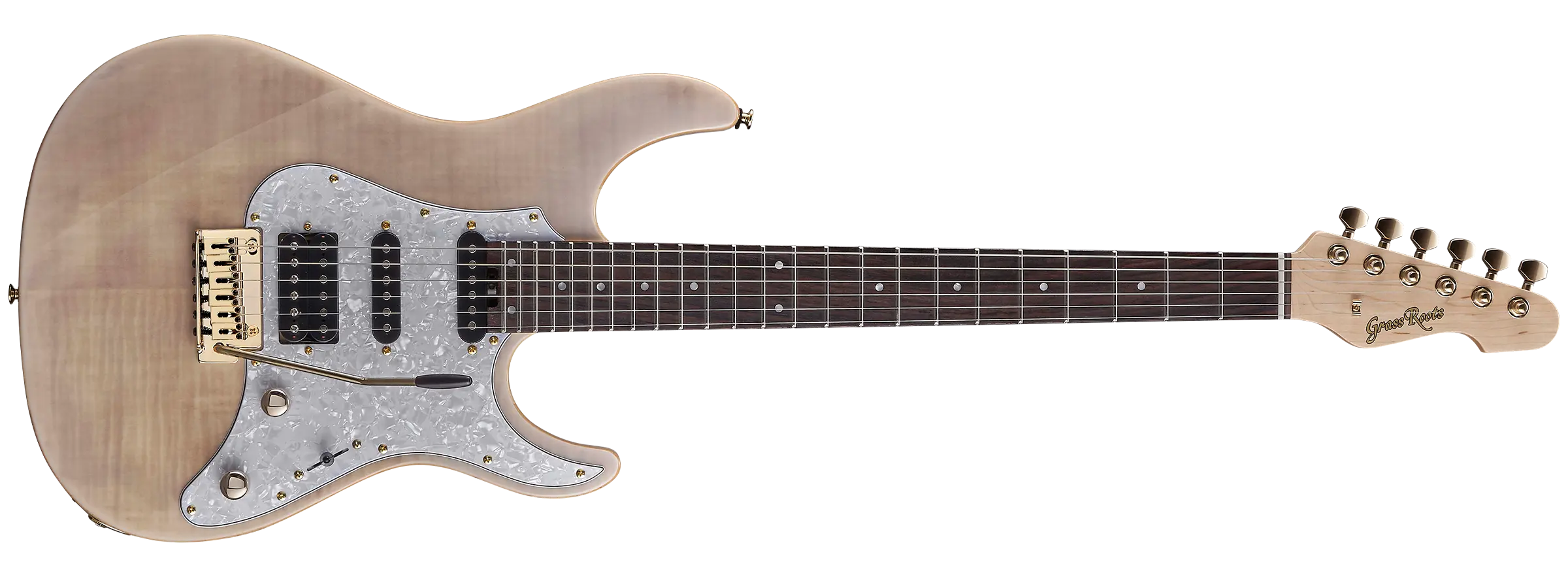 トップは美麗なフレイムメイプルに変更しました。従来より好評を博しているシースルーレッド、シースルーブラックに加え、ニューカラーとして爽快なシースルーブルーサンバースト、気品のあるシースルーパープル、華やかなブロンドの3色が加わり、全5色での展開となります。