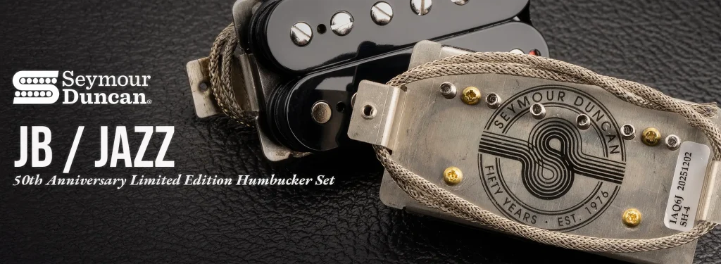 1976年の創業以来、革新的なピックアップでギターサウンドに大きな影響を与えてきたSeymour Duncan。その50周年を記念し、代表的なハムバッカーの組み合わせであるJB/JAZZのセットを、初期生産モデルのヴィンテージ仕様で再現した限定モデルを発売します。