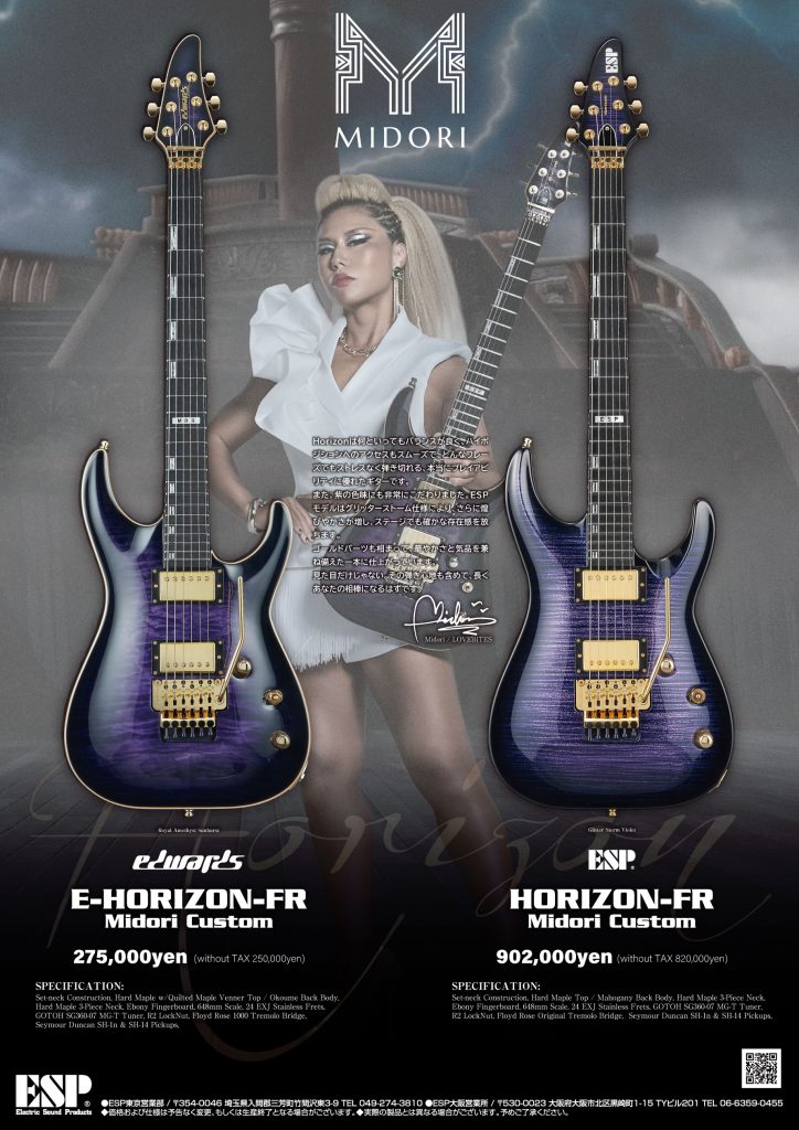 LOVEBITESのギタリストであるMidoriのシグネチュアモデルを、ESPおよびEDWARDSブランドより発売いたします。