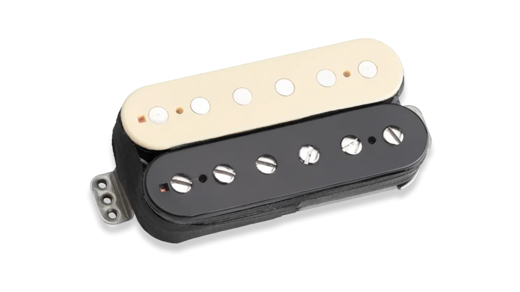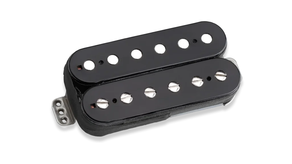 トレムバッカーのポイントは、各モデルの特徴を生かしつつ、シンクロナイズドトレモロやフロイドローズタイプなどの広い弦ピッチを完全にカバーし、1~6弦までのサウンドをもれなくバランスよくピックアップする事。つまり、フェンダースタイルの全てのギターにふさわしいブリッジポジション用ハムバッカーだという訳です。ホビンのサイズがSHシリーズよりも若干広いため、専用エスカッション(ブラック)が付属しています。ブリッジピックアップ上での1弦から6弦までの距離が50mm以上でしたら、Trembucker(TBシリーズ)をお選びください。